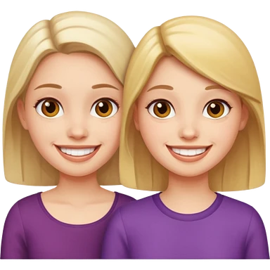 Two best friends making a heart shape with their hands together. One of them has blond hair which is shorter and the other has brown hair tied up. They are both wearing pink outfits. They both have blue eyes emoji