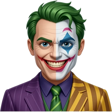 two-face, harvey dent, batman villian, right side of face purple, grey hair emoji