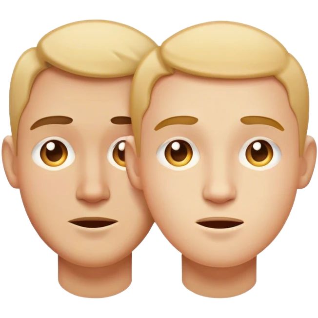 two faces talking, close up, friendly expression, apple emoji style emoji