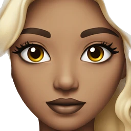 A white girl with long dark brown wavy hair and two pink cosmetic patches under her eyes emoji