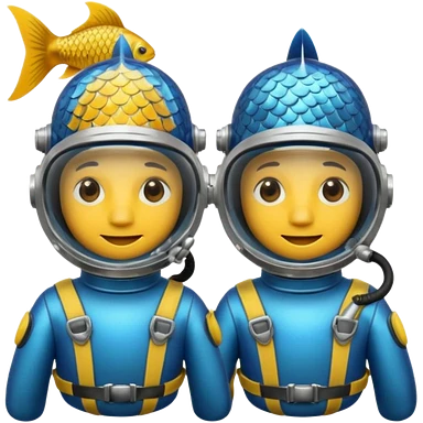 Two fish in dive suit decompressing emoji | AI Emoji Generator