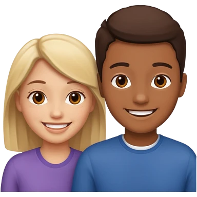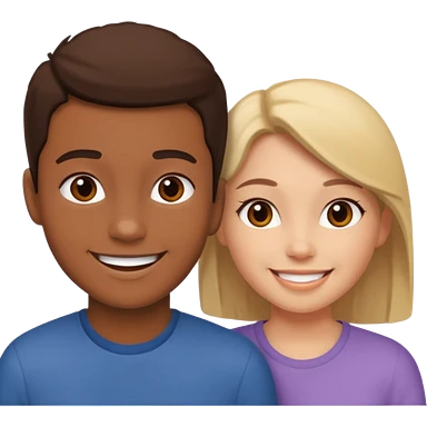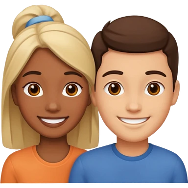 two friends with a MacBook in front, bright and friendly faces, emoji style, inspired by reference emoji