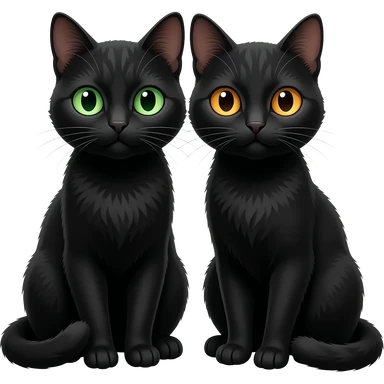 Two black cats sitting close together, one with green eyes and one with amber eyes emoji