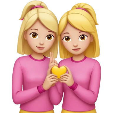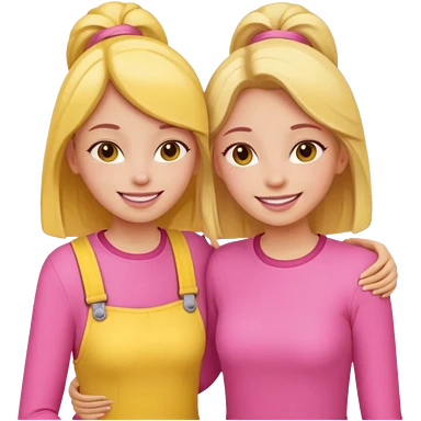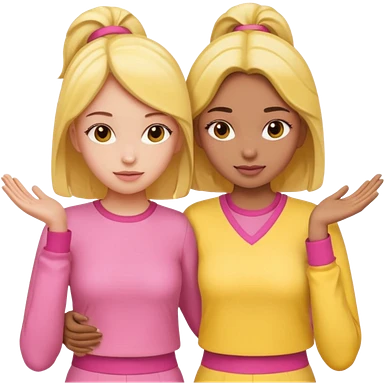 Two girl friends in pink and yellow are supporting each other emoji | AI Emoji Generator