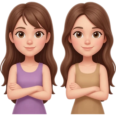 Two girls are hugging. One has dirty blonde hair with a little reddish in it. She has also grey eyes. Her hair is long and straight. The other girl has dark brown hair with hazel eyes emoji