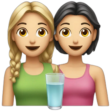 Make two girls. The first one with black glasses and long, straight, black hair, also with braces. She wears a pink top.The second one has long and brown hair, with a little wavy, and has some volume. She does’nt wear glasses. She wears a black top emoji