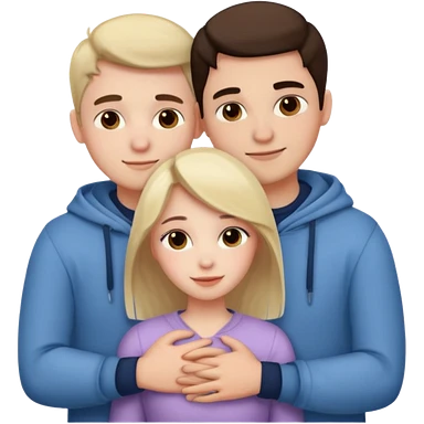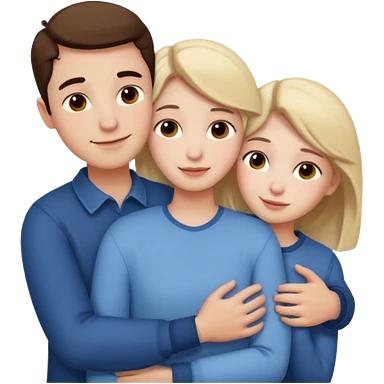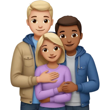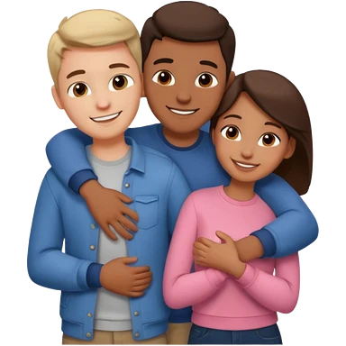 three people: two guys, one girl they're in love, they're dressed, they hug emoji