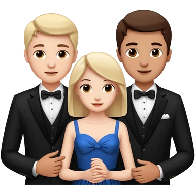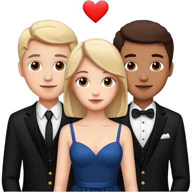 three people: two guys, one girl they're in love, they're dressed emoji