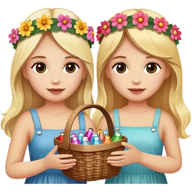 Two blonde girls wearing flower crown holding a basket full of mini bottles emoji