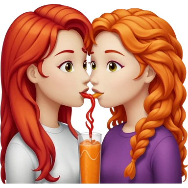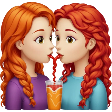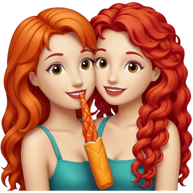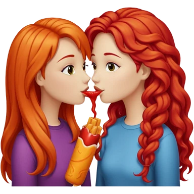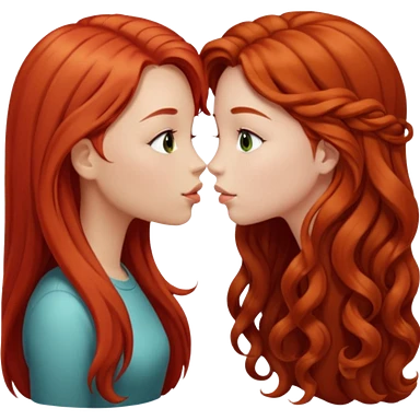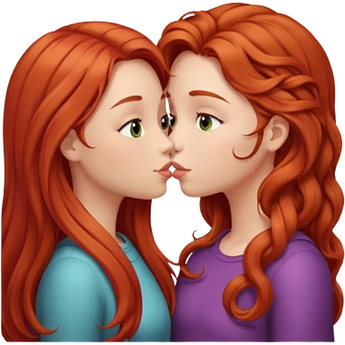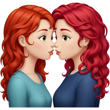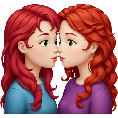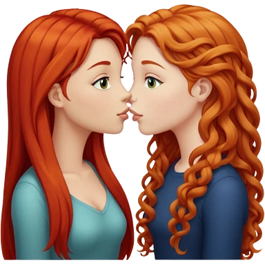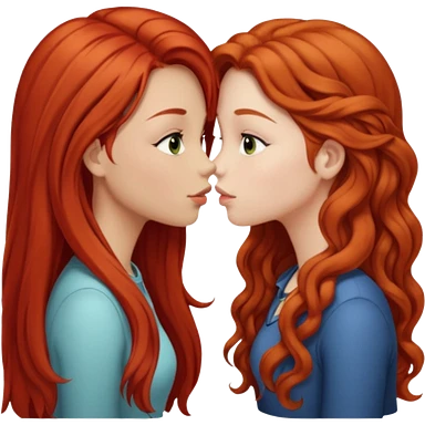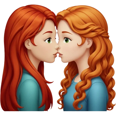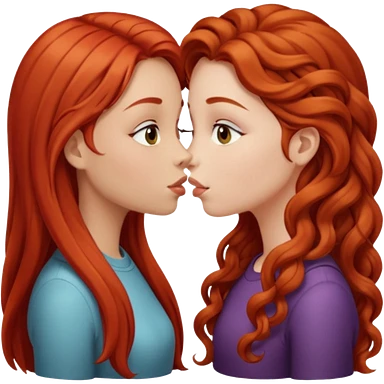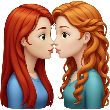 two girls kissing, one with long straight red hair, the other with long curly blonde hair emoji | AI Emoji Generator