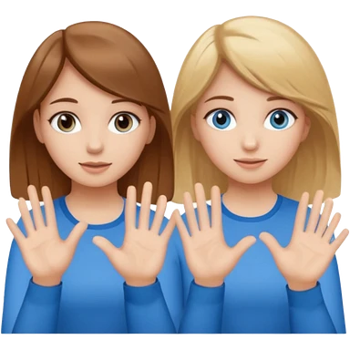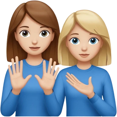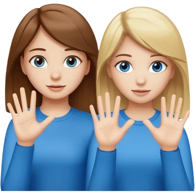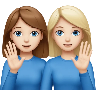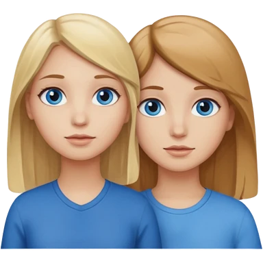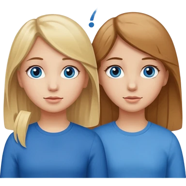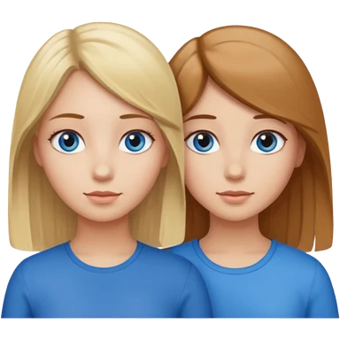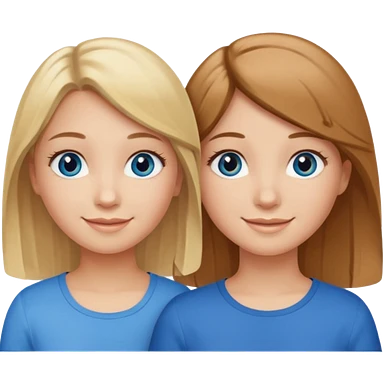 Two girls one with long brown hair and brown eyes the other with short blonde hair and blue eyes emoji