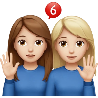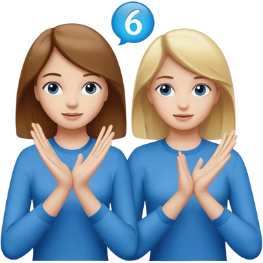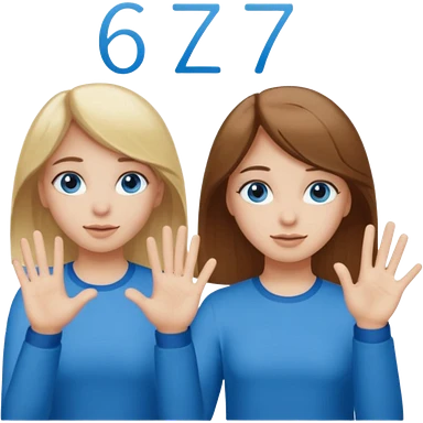 Two girls one with blond hair and one with brown hair both blue eyes with speech marks saying six seven emoji | AI Emoji Generator