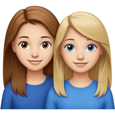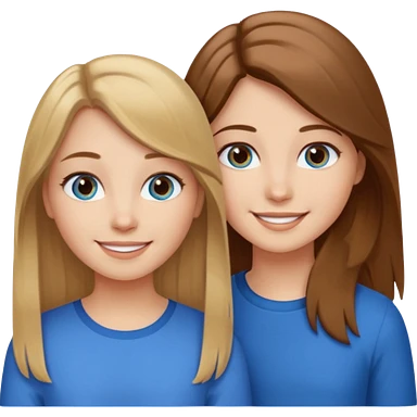 Two girls one with long brown hair and brown eyes the other with short blonde hair and blue eyes emoji | AI Emoji Generator