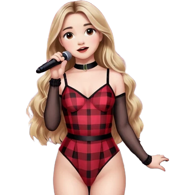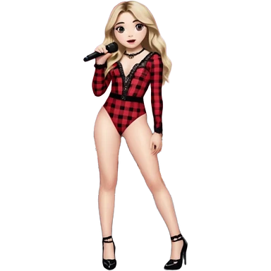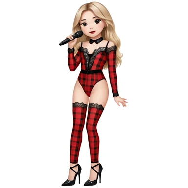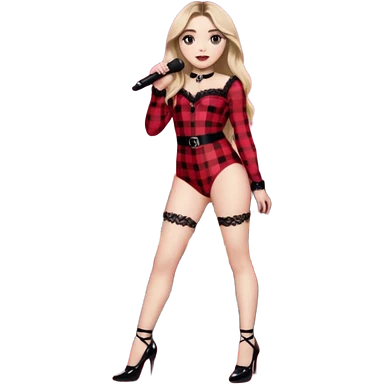 Sabrina carpenter singing at concert wearing a black and red plaid bodysuit emoji