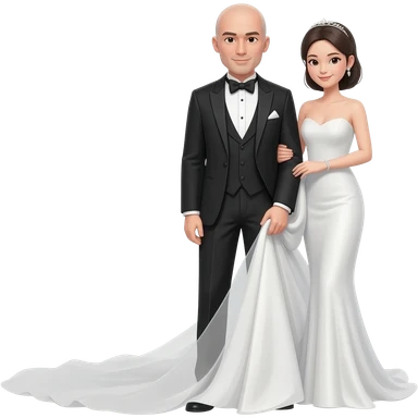 Bald groom with Asian bride emoji