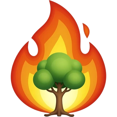 Minimalist emoji of the biblical burning bush: a small green bush surrounded by golden and reddish flames that burn without consuming the plant. Simple, clean modern style, soft glowing colors, sacred symbolic appearance, transparent background, similar to an official emoji. emoji