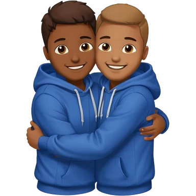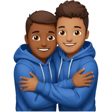 two happy brown skin guys hugging, in hoodies emoji