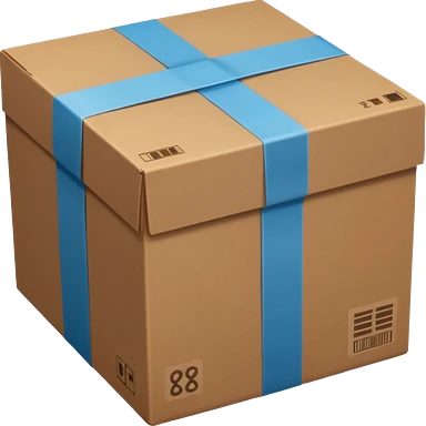 a package with two wide blue tape strips in an H shape on the top only, no other markings, viewed slightly from above, clear and simple emoji