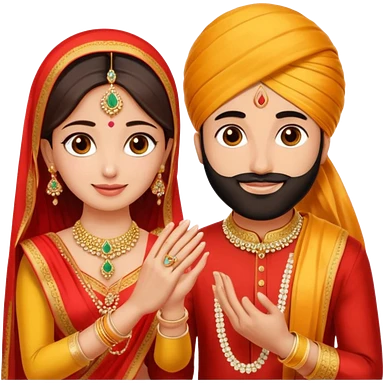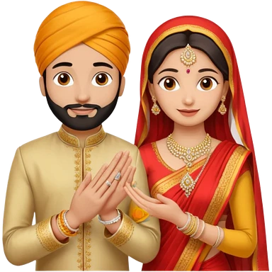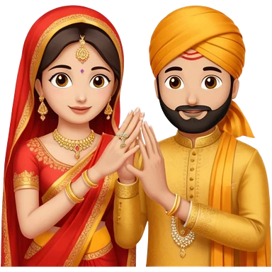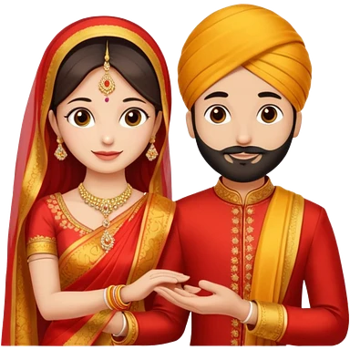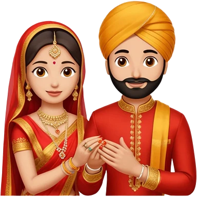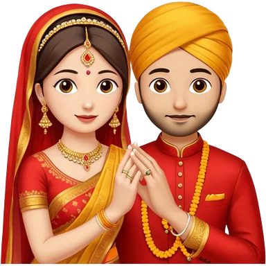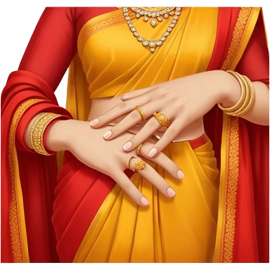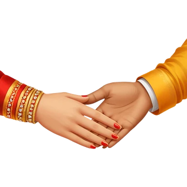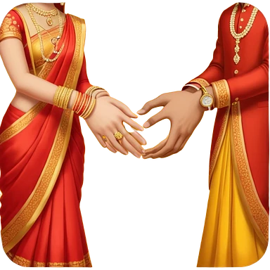 Two hands in a engagement..One hand of groom and one hand of bride. Bride hand - red/yellow saree. groom- light orange punjabi (oonly hands will be visible in the image) emoji