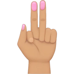 Hand making a W shape with 4 fingers with the 2 in the middle twisted emoji