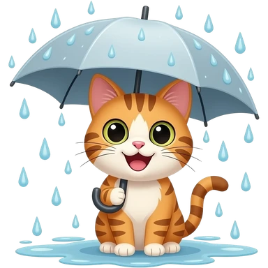 a happy cat under an umbrella in the rain emoji