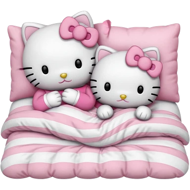 two hello kitties sleeping in a bed next to each other emoji | AI Emoji Generator