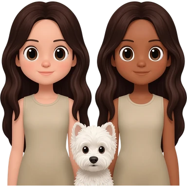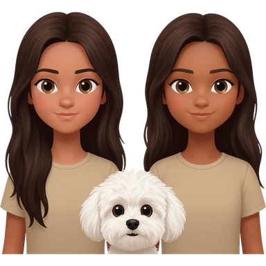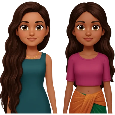 two identical friends with the emoji style. Both have matching bunny shirts and have PIN STRAIGHT HAIR One has super long dark brown hair that goes to waist, one has long hair that is also dark brown. They both have Indian skin emoji | AI Emoji Generator