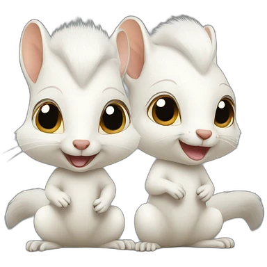 White bichon maltese playingi with one black cat and two brown fat squirels emoji