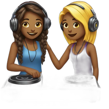 two lesbian queens in anime style with brown hair, one has black tiara and the other has blue tiara emoji