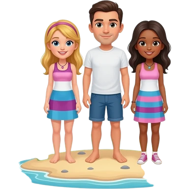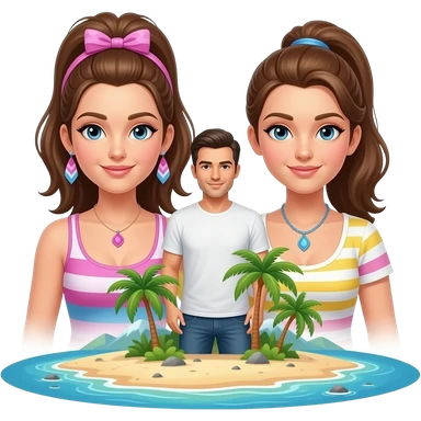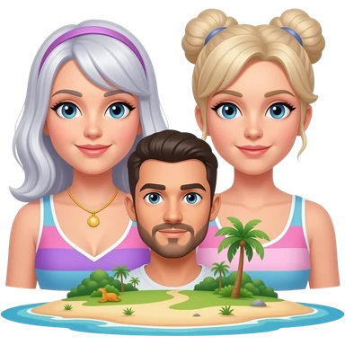 Two lesbian women kissing and 1 man on a deserted island emoji | AI Emoji Generator