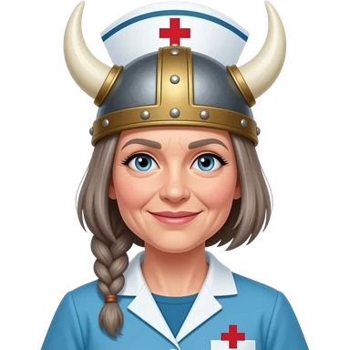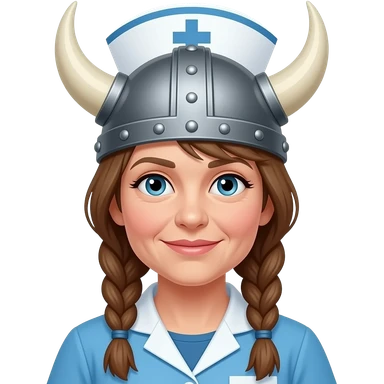 Viking helmet older woman with braids and cropped hair nurse lesbians emoji