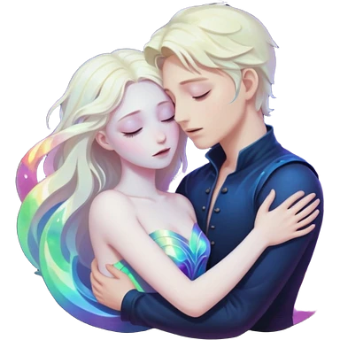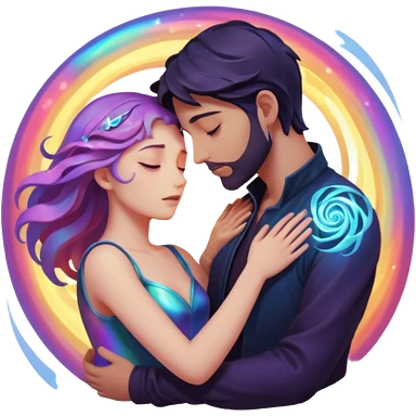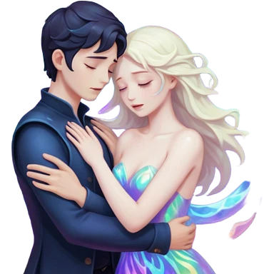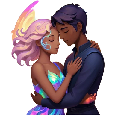 Two lovers surrounded by collapsing magic light, tragic dark fantasy romance emoji