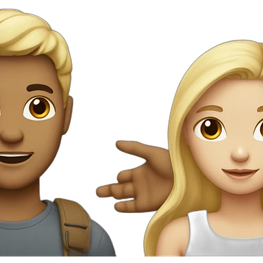 two lovers look each other in the eye with love, one is blondie and other one is brunette with a white skin emoji