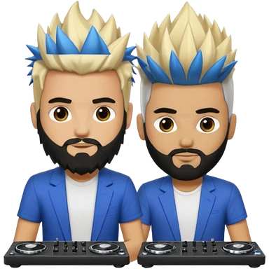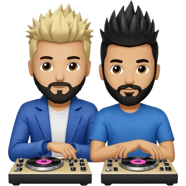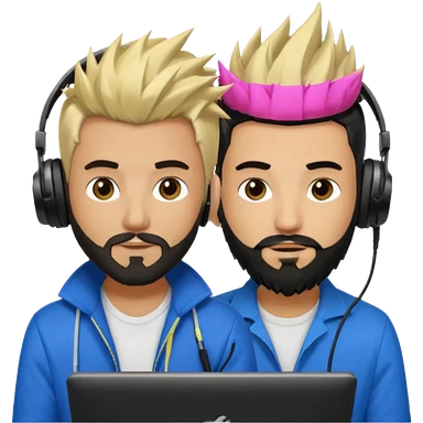 Two male dj’s, one with a long spiky Blonde hair, the second one black short hair and black beard emoji | AI Emoji Generator