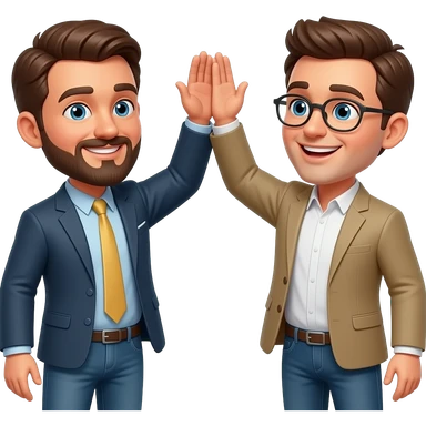Two men hugging, one white with black hair, one brown with hlasses emoji