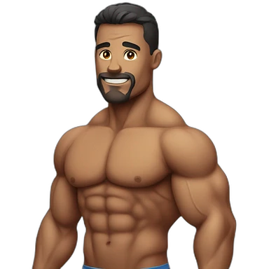 Muscly white Man with dark brown pompadour style hair and short beard in a speedo emoji