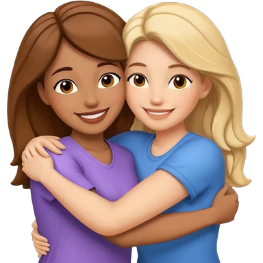 two girls hugging, one with dark hair and one with blonde hair, best friends, emoji style emoji
