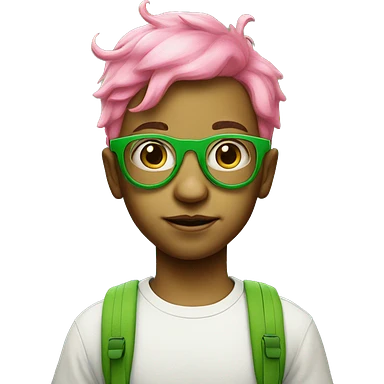Boy with pink hair wearing green glasses and has two lollipop-like antennas on his head emoji