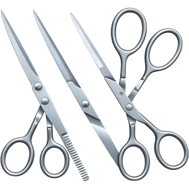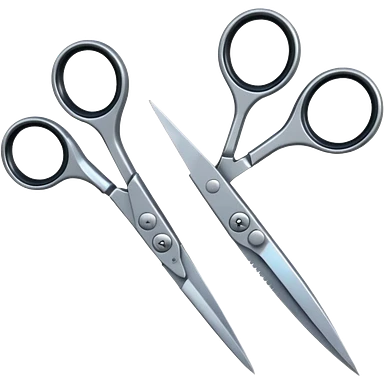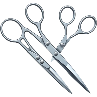 “Two silver scissors positioned to form a crisscross pattern like they’re scissoring emoji