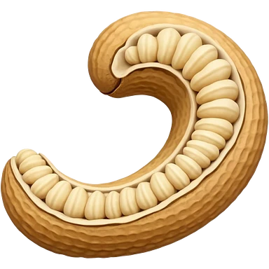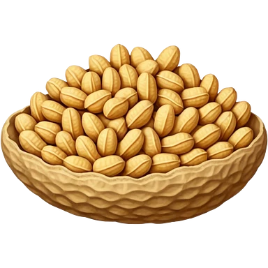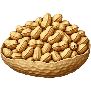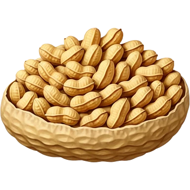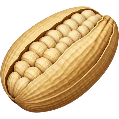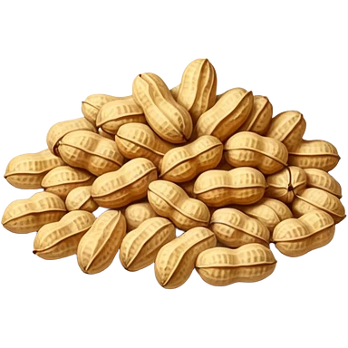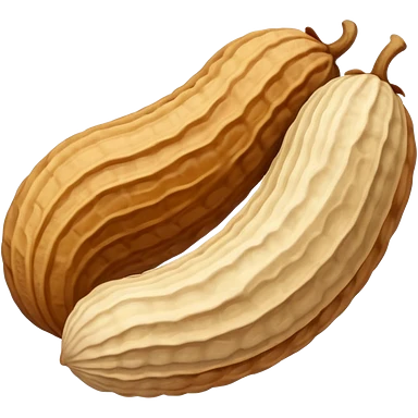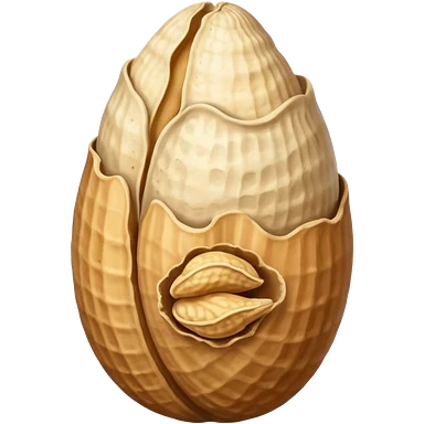 two or three whole peanuts in rough beige textured shells with irregular oval shapes and natural ridges, one shell slightly open revealing smooth pale nuts inside, apple emoji style, soft lighting, subtle shadows, transparent background, emoji scaleemoji