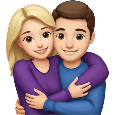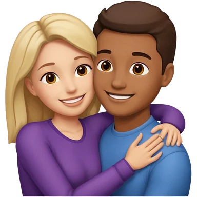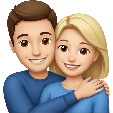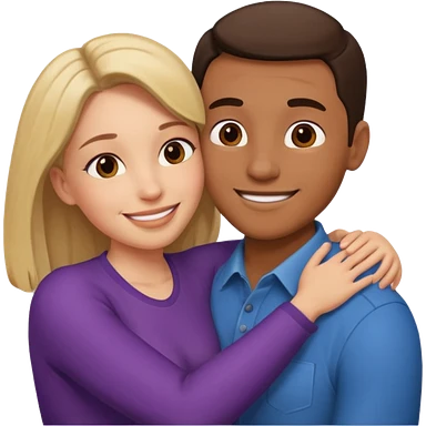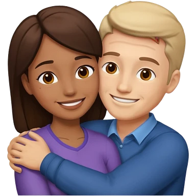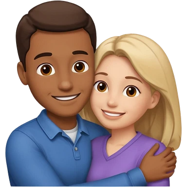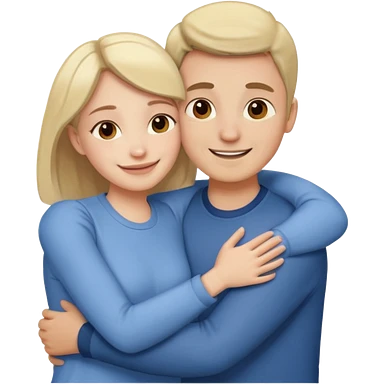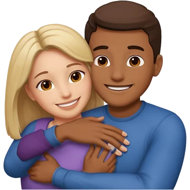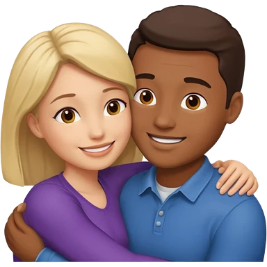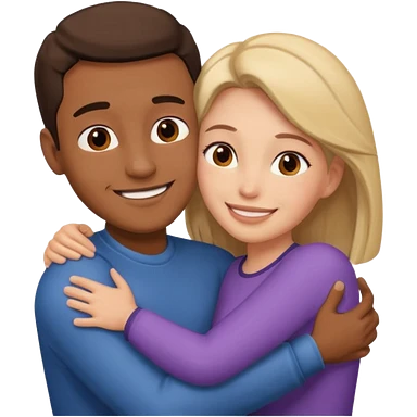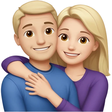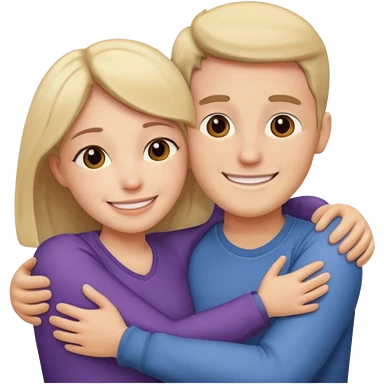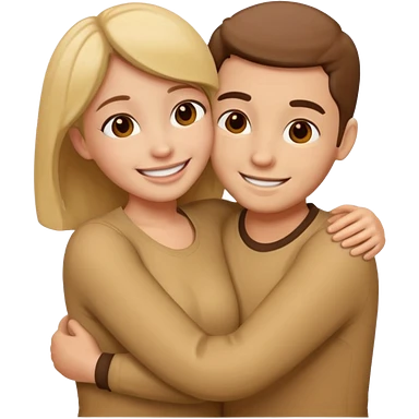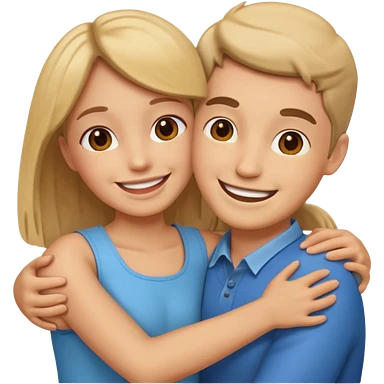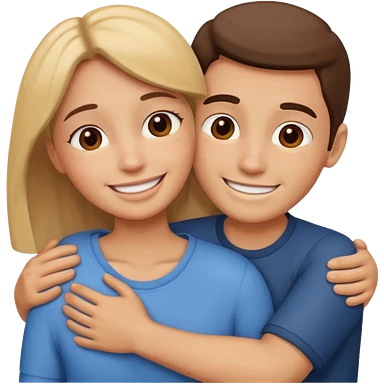 two people hugging side by side, smiling, rounded cute style, soft shading emoji