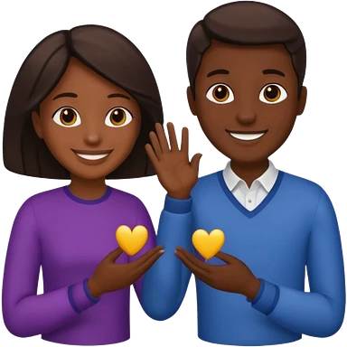 two people hugging side by side, smiling, rounded cute style, soft shading emoji