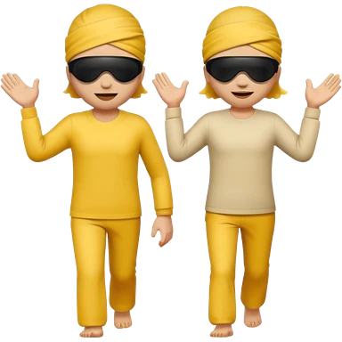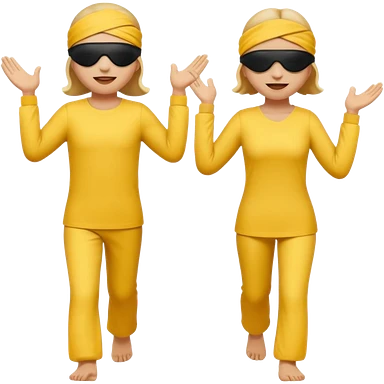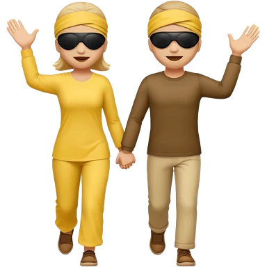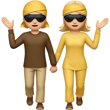 Two people with blindfolds and blind person sticks leading eachother emoji