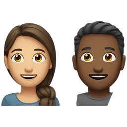 two people talking to each other, close up, friendly expression, apple emoji style emoji