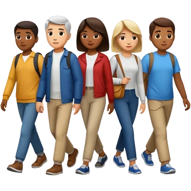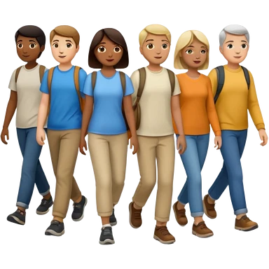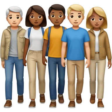 A line of 5 people standing in profile, one behind the other, all facing to the right, second variation emoji