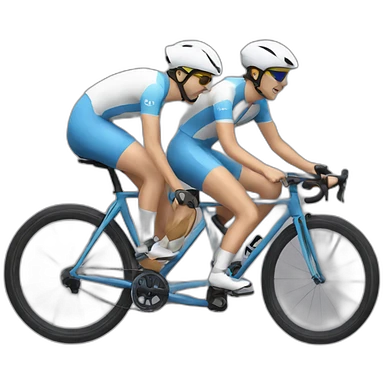 white people tandem riding bike with blue helmets and blue shirts emoji