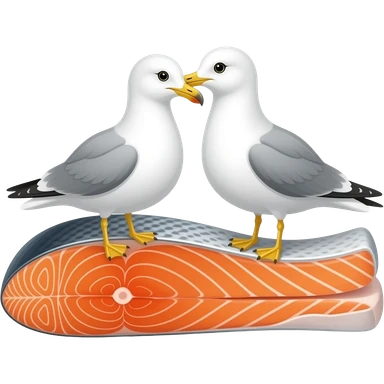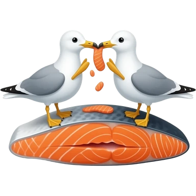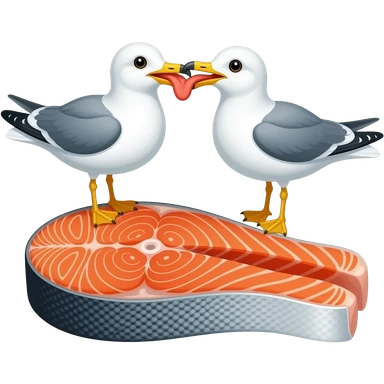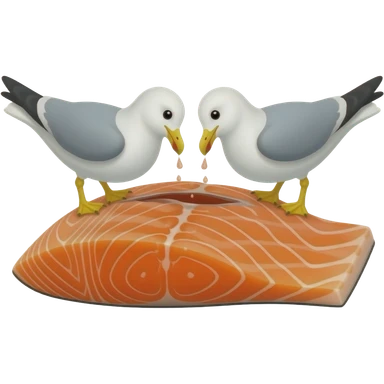 Two seagulls sharing pieces of salmon emoji | AI Emoji Generator