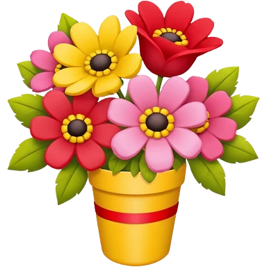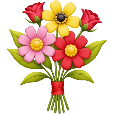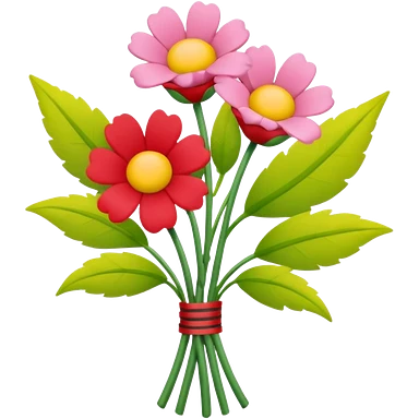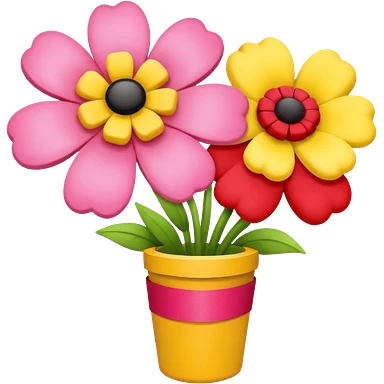 Two flowers one pink and one red in yellow bouquet with red band emoji