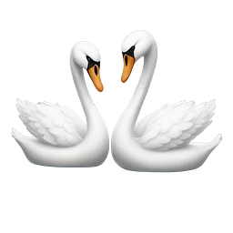 Create an image of two swans facing each other with their necks curved to form a heart shape. The swans should be positioned so that their beaks meet at the center of the heart, symbolizing love and unity. emoji