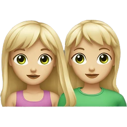 two white sisters hugging oane blonde with blue eyes and the other one with brown hair and green eyes emoji | AI Emoji Generator